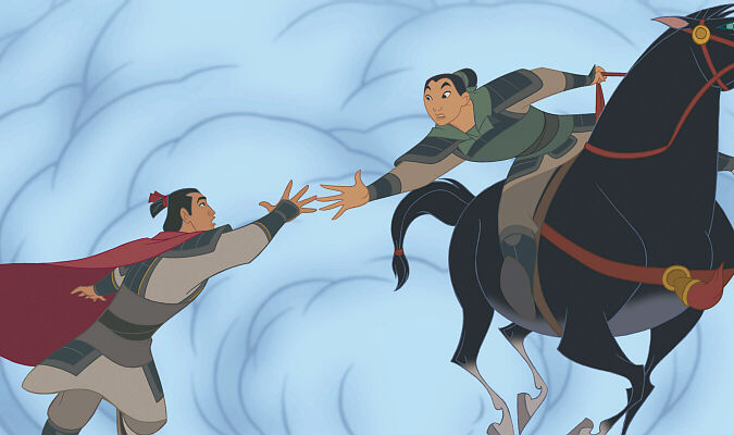파씨 가문의 외동딸 뮬란(Mulan: 밍나 웬 목소리 분 / 레아 살롱가 노래 분)은 자기 주장이 워낙 강해 선을 볼때마다 퇴짜를 맞는 시대를 앞선 여성이다. 한편, 훈족이 국경을 침략하자 뮬란의 연로한 아버지(파 조우: 오순택 목소리 분)도 징집 명령을 받게되고, 뮬란은 심각한 고심에 빠지게 된다. 아버지의 충성심이 워낙 강해서 뮬란의 만류를 뿌리쳤고, 아버지를 대신 하려해도 여자는 절대로 참전할 수 없기 때문이다. 고민에 고민을 거듭하던 뮬란은 남장을 하고 전장에 참가하기로 비장한 결심을 한다.