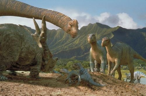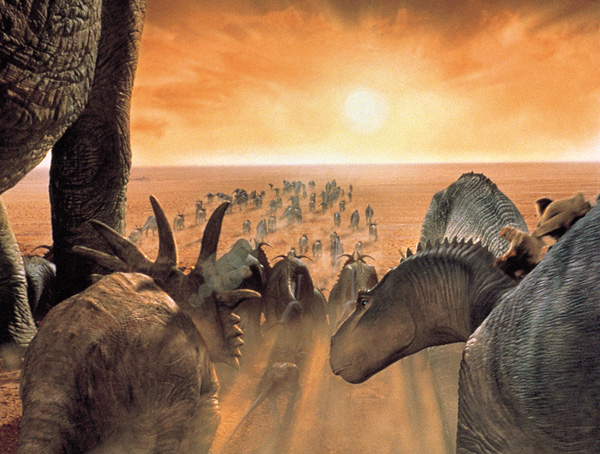 기원전 6500만년 백악기. 이구아노돈(금룡)의 서식지에 포악한 카르노타우르스의 습격으로 부화 직전인 이구아노돈 알이 전부 짓밟힌다. 우여곡절 끝에 아득히 먼 섬에 떨어진 뒤 알에서 극적으로 부화한 알라다(D.B 스위니 목소리 분)는 여우원숭이의 섬에서 평화롭게 살고 있다. 어느날 거대한 유성이 지구와 충돌하면서 섬은 파괴되고, 알라다는 야르(오시 데이비스 목소리 분), 플리오(알프레 우다드 목소리 분), 수리(헤이든 파네티에리 목소리 분), 지니(맥스 카셀라 목소리 분) 등의 여우원숭이들과 함께 겨우 살아남는다. 천신만고 끝에 육지에 도착산 알라다 일행은 자신들처럼 유성의 충돌을 피하여 안전한 서식지를 찾아 피난 중이던 다이너소어 무리와 만난다.