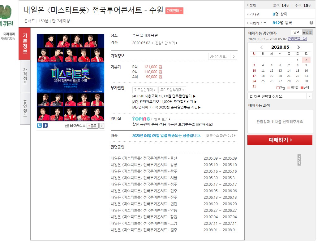 그럼 미스터트롯 전국투어콘서트 예매는 어떻게?