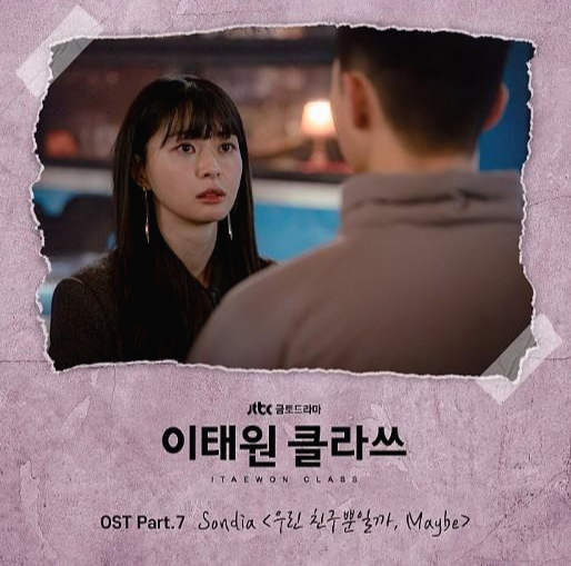 매력적인 음색의 Sondia가 참여한 <우린 친구뿐일까>는 누구보다 새로이(박서준)를 응원하지만 현실을 외면할 수 없었던 극 중 인물 수아(권나라)의 이야기를 담은 노래로 새로이를 향한 수아의 미안함과 애틋한 마음을 섬세하고 절제된 감성으로 들려주는 곡이다. 이 곡의 영어 버전인 <Maybe>는 할로윈 데이를 배경으로 그려졌던 새로이와 수아의 아름다운 한때를 장식하며 시청자들에게 깊은 인상을 남긴 바 있다.