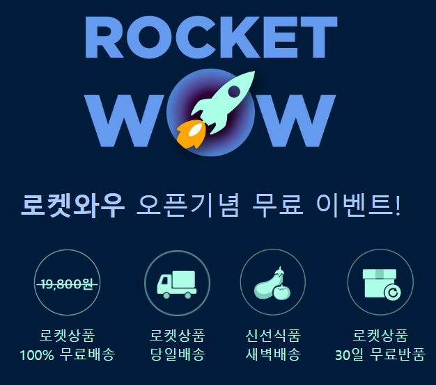 현재 19,800원 이상을 주문하면 로켓 배송을 해주는 서비스를 진행하고 있습니다. 단, 로켓 와우라는 월 2,900원의 구독서비스를 이용하게 된다면, 금액제한 없이 24시 이전에 주분하면 다음날 배송해주는 시스템을 이용하고 있다. 신선식품 새벽배송 카테고리인 "로켓프레시"를 이용할 수 있다. 단, 신선식품은 15,000원 이상만 가능하다.(로켓와우 이용시)