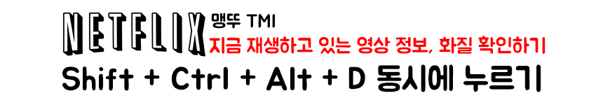아참 그리고 지금 재생하고 있는 영상의 재생 정보와 해상도를 확인할 수 있는 단축키도 알려줄게! 이정도 알고 있으면 넷플릭스 박사로 불릴거야! [Shift + Ctrl + Alt + D]를 누르면 확인할 수 있어!