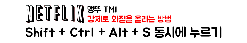이 방법은 넷플릭스를 윈도우로 이용하는 경우에 해당하니까, 윈도우 노트북 또는 PC를 이용하는 사람들은 꼭 알고 이용했으면 좋겠어! 맥북은 차별하냐고? 맥북은 2번에서 말했던 방법으로 화질을 올릴 수 있으니까 위의 방법을 똑같이 따라해! [Shift + Ctrl + Alt + S]를 동시에 누르면 비트레이트를 높게 설정하면서 고화질의 화면으로 바뀌는거니까, 고화질로 보고 싶은 사람들은 꼭 이용해봐!