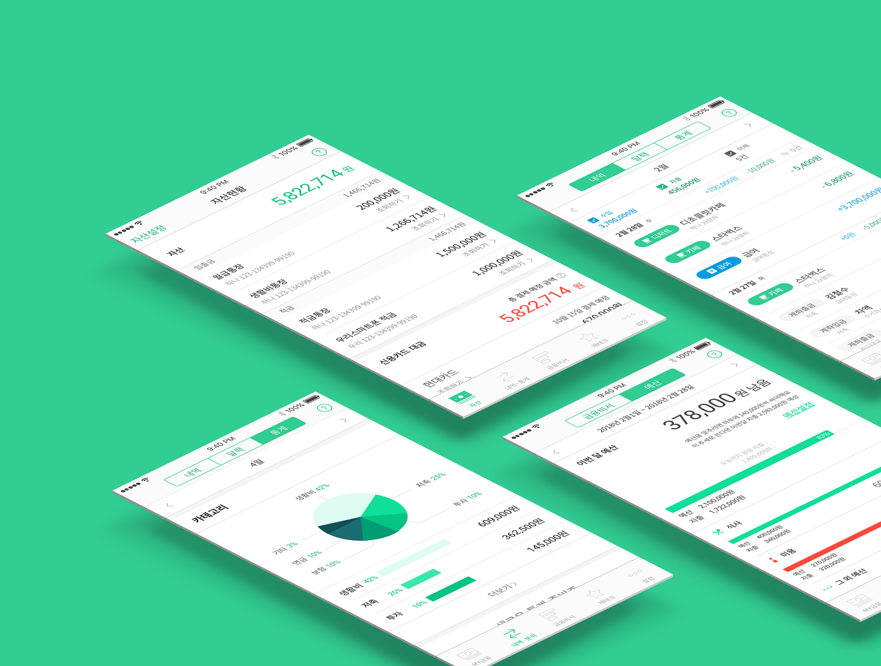 녹색에 가까운 민트색과 흰색의 조합은 정말 디자인 적인 부분에서도 좋다고 생각합니다. [뱅크샐러드]는 흩어진 금융 자산과 실물 자산을 한번에 모아서 관리해주는 기능이 대표입니다. 또한 1:1 맞춤 솔루션까지 제시해주고 있으니, 한번에 모든 것을 관리하고 싶은 분들에게는 필수입니다!