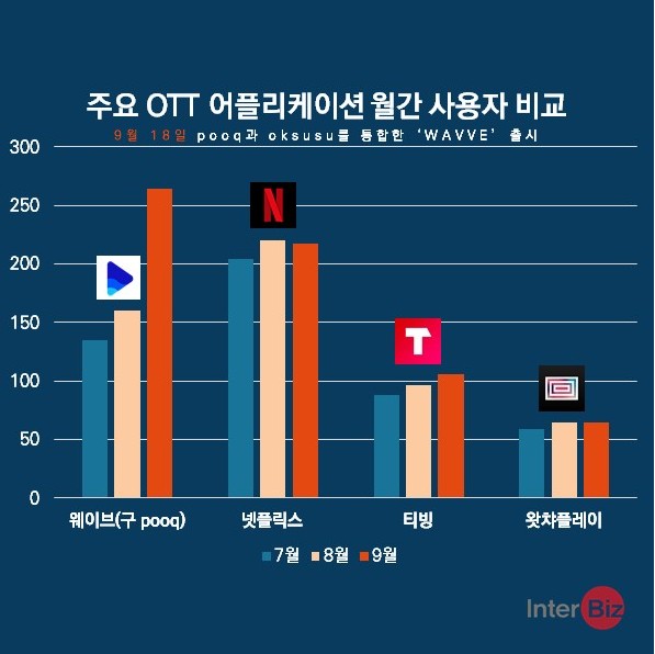 시장조사업체 아이지에이웍스에 따르면 2019년 9월, 웨이브에 등록된 월 이용자수는 264만명으로 넷플리스의 217만명 보다 47만명이나 더 많은 수치를 보여주면서 국내 소비자들이 [웨이브]에 얼마나 많은 관심을 가지고 있는지 보여줬지.