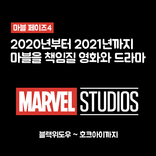 마블 페이즈 4의 순서는 블랙위도우를 시작으로 호크아이로 마무리 지어질 예정입니다. 그러면 어떤 작품들이 나올 것인지 한번 알아볼까요?