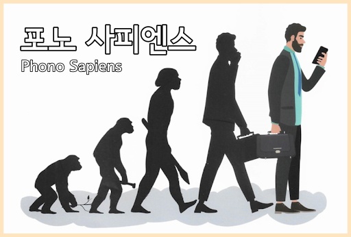 포노 사피엔스(Phono Sapiens)란 스마트폰을 의미하는 Phone과 인류를 의미하는 Sapiens가 합쳐져서 만들어진 신조어다. 한마디로 스마트폰 없이는 생활하는 것을 힘들어하는 인류라는 말이다.