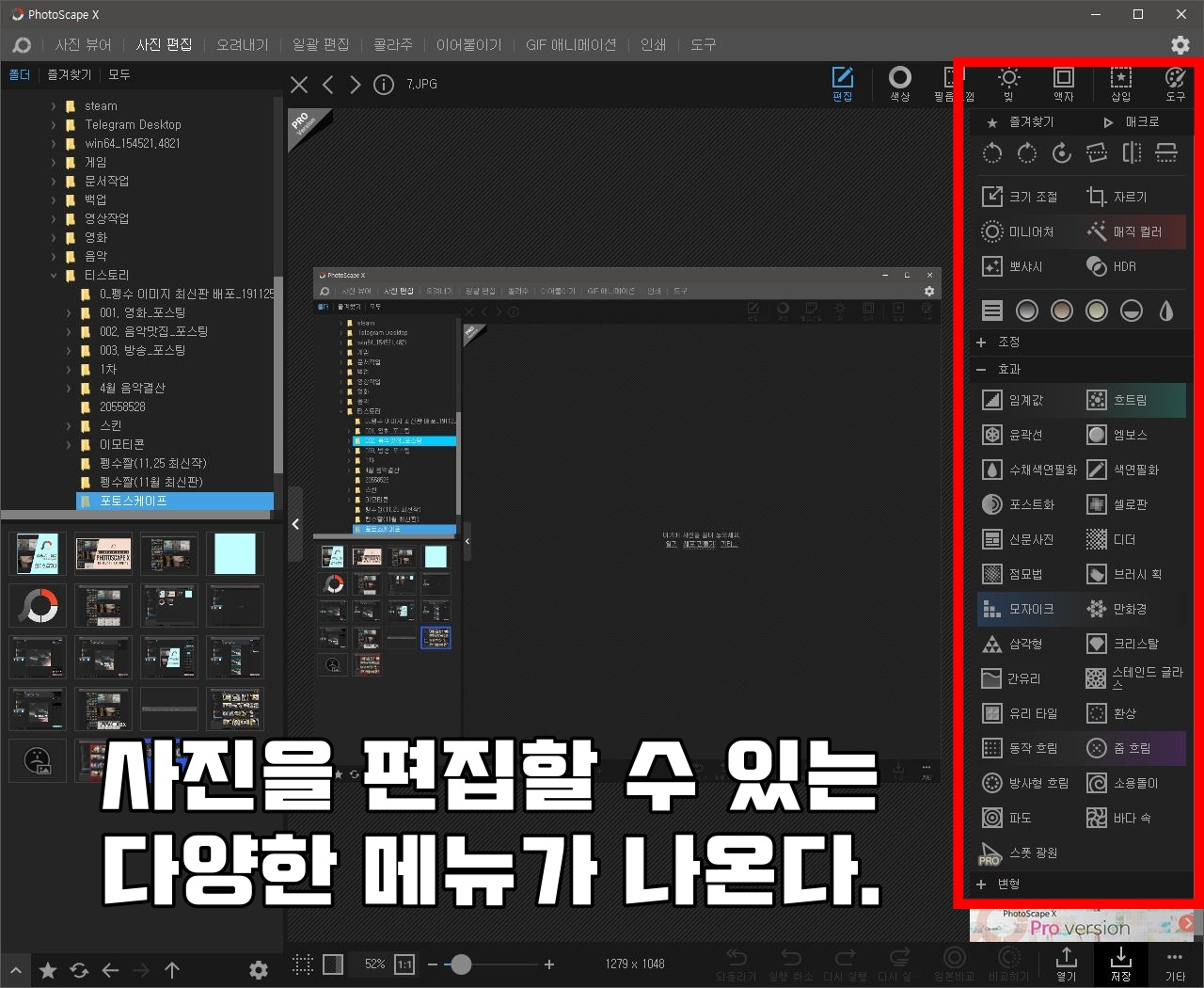 포토스케이프 X의 인터페이스