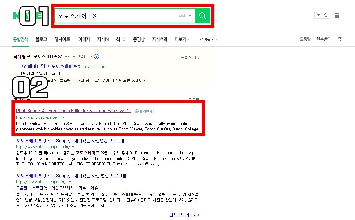 1. 네이버 & 다음에서 <포토스케이프> 검색