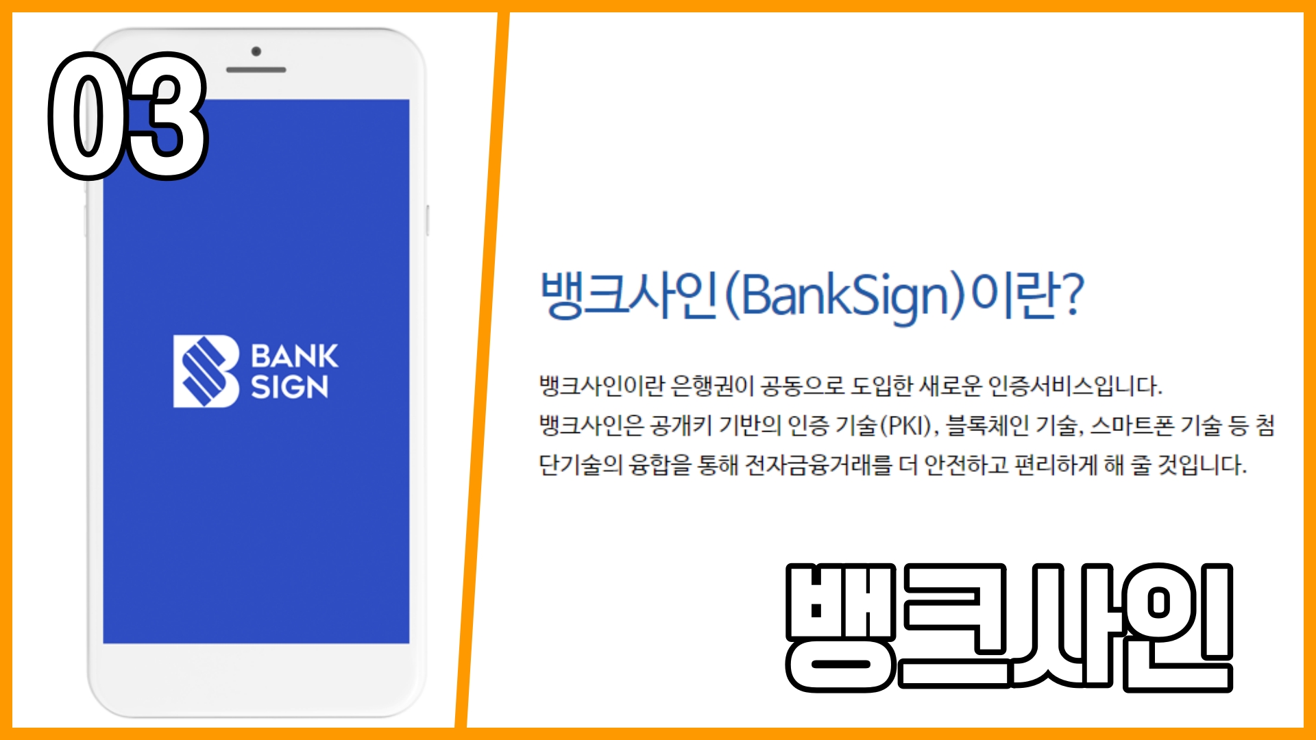 <뱅크사인>은 은행권이 공동으로 도입한 새로운 인증 서비스다. 2018년 은행연합회와 회원사들이 출시한 서비스로, 한번 발급하면 여러 은행에서 사용할 수 있다는 장점을 가지고 있다.