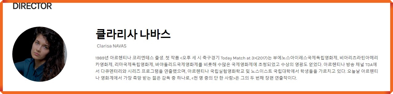 - 👉천 명 중의 단 한 사람(One in a Thousand), 클라리사 나바스 감독 / 장편