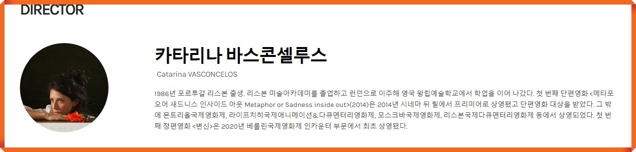 - 👉변신(The Metamorphosis of Brids), 카타리나 바스콘셀루스 감독 / 장편