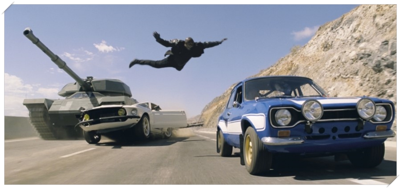 이를 위해서 W모터스의 라이칸 하이퍼스포트라는 전세계 7대 뿐인 스포츠카를 시원하게 날려버렸으며, 230대가 넘는 차량이 촬영 도중에 증발하기도 하였다. 많은 자동차를 파괴한만큼 이 영화는 "유니버설픽처스" 역사상 두 번째로 많은 수익을 올렸다.
