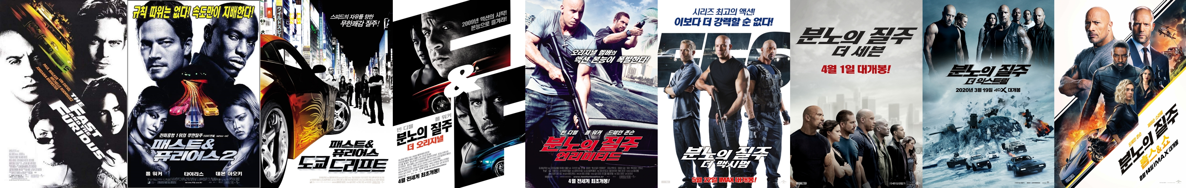 분노의 질주는 2001년 1편을 시작으로 지금까지, 본편 8개와 스핀오프격 작품인 <분노의 질주 : 홉스&쇼>를 포함하면 약 9편의 작품으로 장편 시리즈라고 할 수 있다. 약 19년의 역사를 가지고 있으며, 속편도 망하지 않고 꾸준히 좋은 평가를 받고 있는 작품이다.