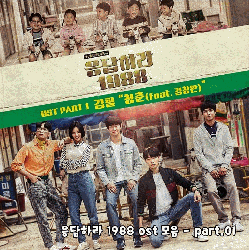 <응답하라 1988>의 첫 번째 OST는 바로, 한국 록의 전설적인 밴드 산울림의 "청춘"을 섹시한 음색이 매력적인 "김필"이 불렀다. 편곡은 원곡의 관조적인 가사가 더욱 돋보이게 만들었으며, 클래식 기타와 슬라이드 기타, 플루겔혼 등 소편성 악기르 활용한 것이 특징이다.