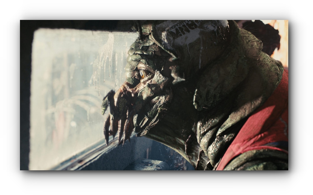 또한 영화에 나오는 주인공 비커스는 <유동체>에 노출되면서 인간이 아닌 프롬으로 점점 변화하는 과정을 보여주고 있습니다. 이로 인해서 그는 인간도 이나고 프롬도 아닌, 그저 실험에 이용 가능한 물건이 되었지요. 변화하는 과정에서 그는 프롬들을 이해하게 되지만, 인간으로 돌아가고 싶어하는 욕망에서 잔혹함을 보이는 모습까지 보여줍니다.