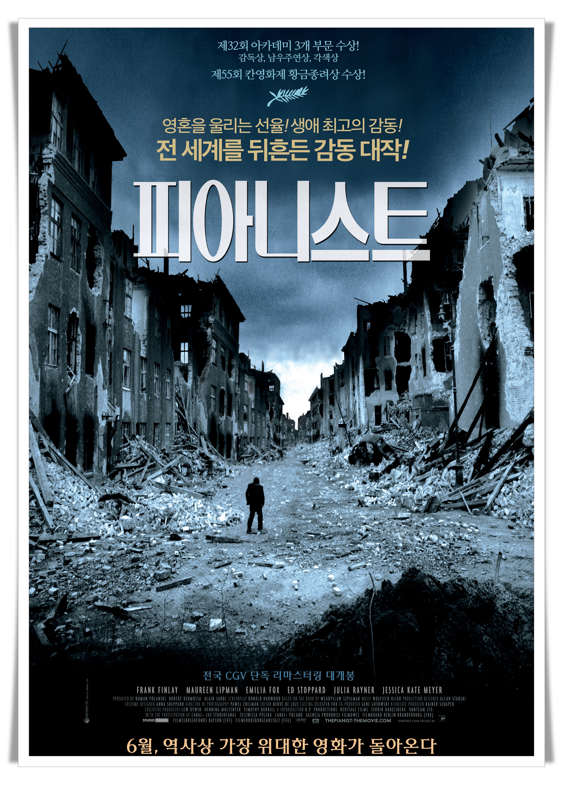 폴란스키 감독의 <피아니스트>는 유태인 피아니스트 블라디슬로프 슈필만의 자서전을 바탕으로 제작된 영화 입니다. 그렇기 때문에 그의 인생이 고스란히 녹아들어 있습니다. 폴란드에서 국영 라디오 방송국에서 활동하던 피아니스트 "슈필만"이 독일 나치군에 의해서 일어나는 전쟁속에서 살아남는 일대기를 보여줍니다.