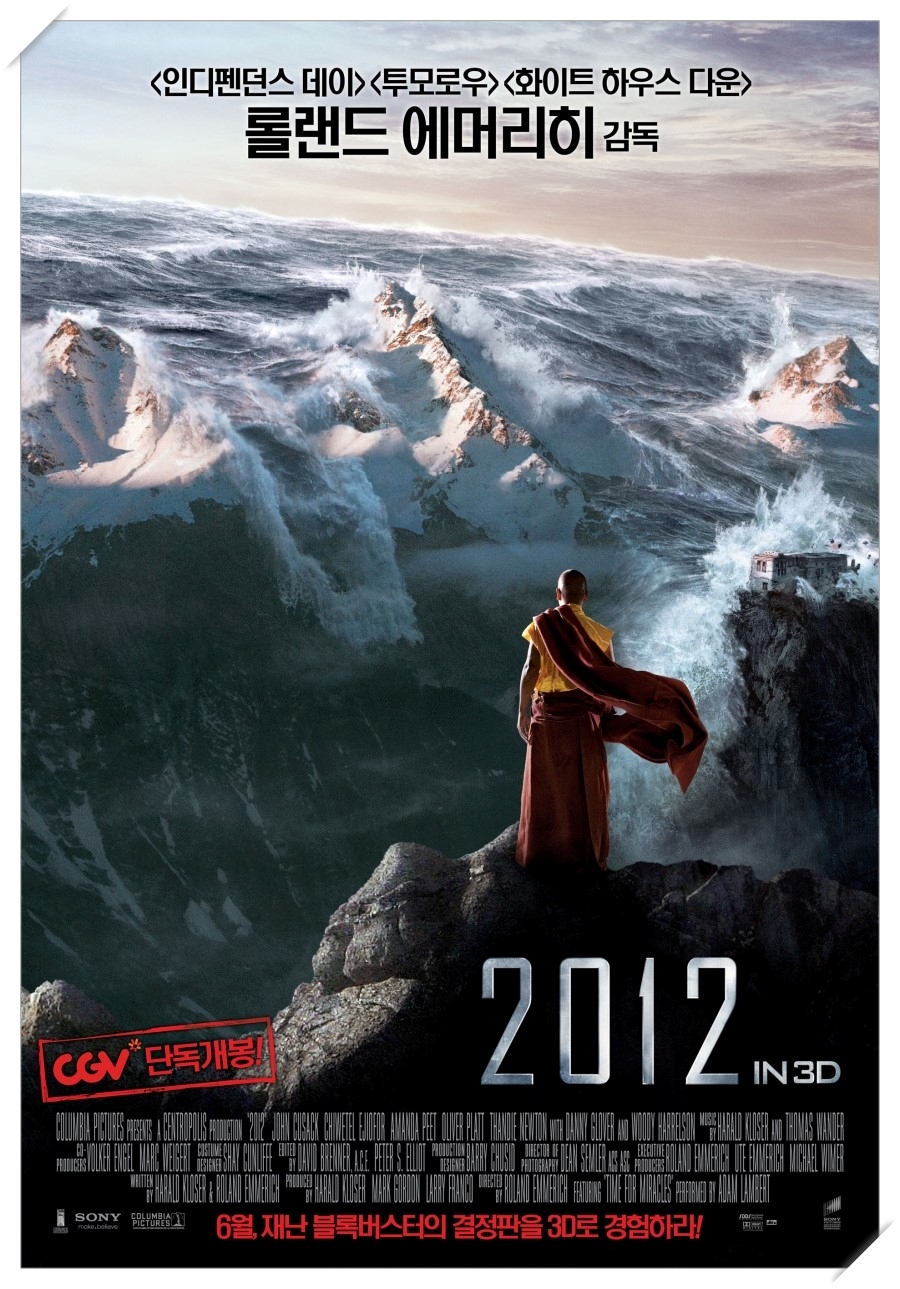 이전부터 인류의 멸망에 대하여 직접적으로 다루고 있기는 하지만, 이 영화가 개봉하던 당시가 2009년이라는 점을 고려해 봤을 때, 완벽한 연출과 스토리가 있었다고 생각됩니다. 2010년이 되기 전에, 세계가 멸망할 것이라는 이야기를 여기저기서 쏟아내고 있었습니다.