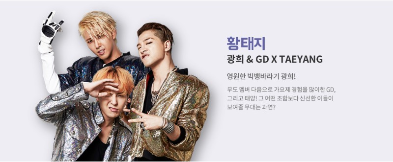 영원한 빅뱅바라기 광희! 무도 멤버 다음으로 가요제 험이 많은 GD와 태양. 그 어떤 조합보다 신선한 그들이 보여주는 무대는 과연 어떨까?