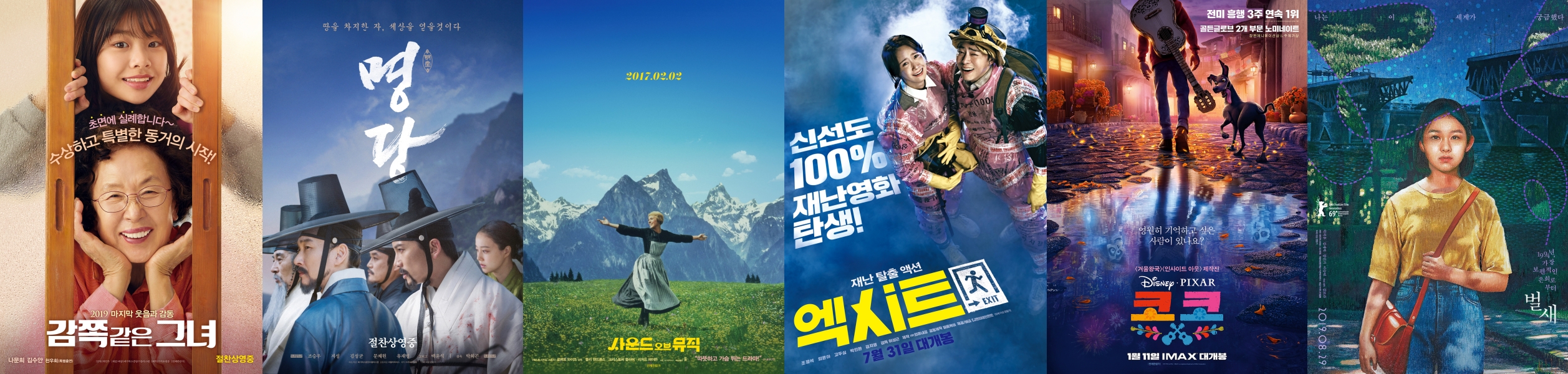 가장 눈에 들어오는 작품으로는 감쪽같은 그녀, 사운드 오브 뮤직, 엑시트, 코코, 벌새 입니다! 특히 엑시트랑 벌새는 꼭 보셨으면 합니다!