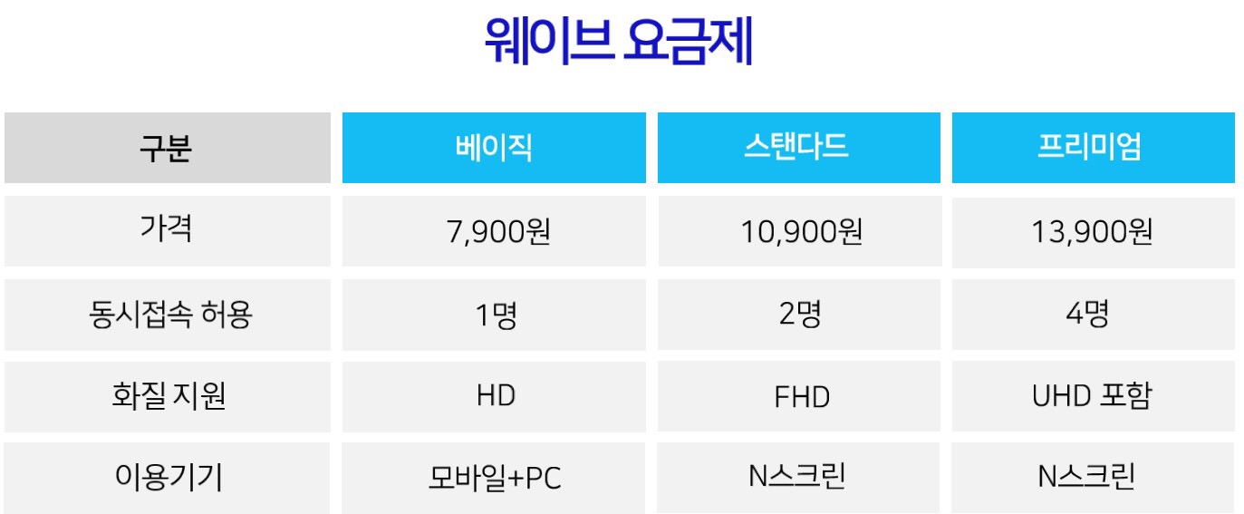 웨이브의 가격을 알아보겠습니다!