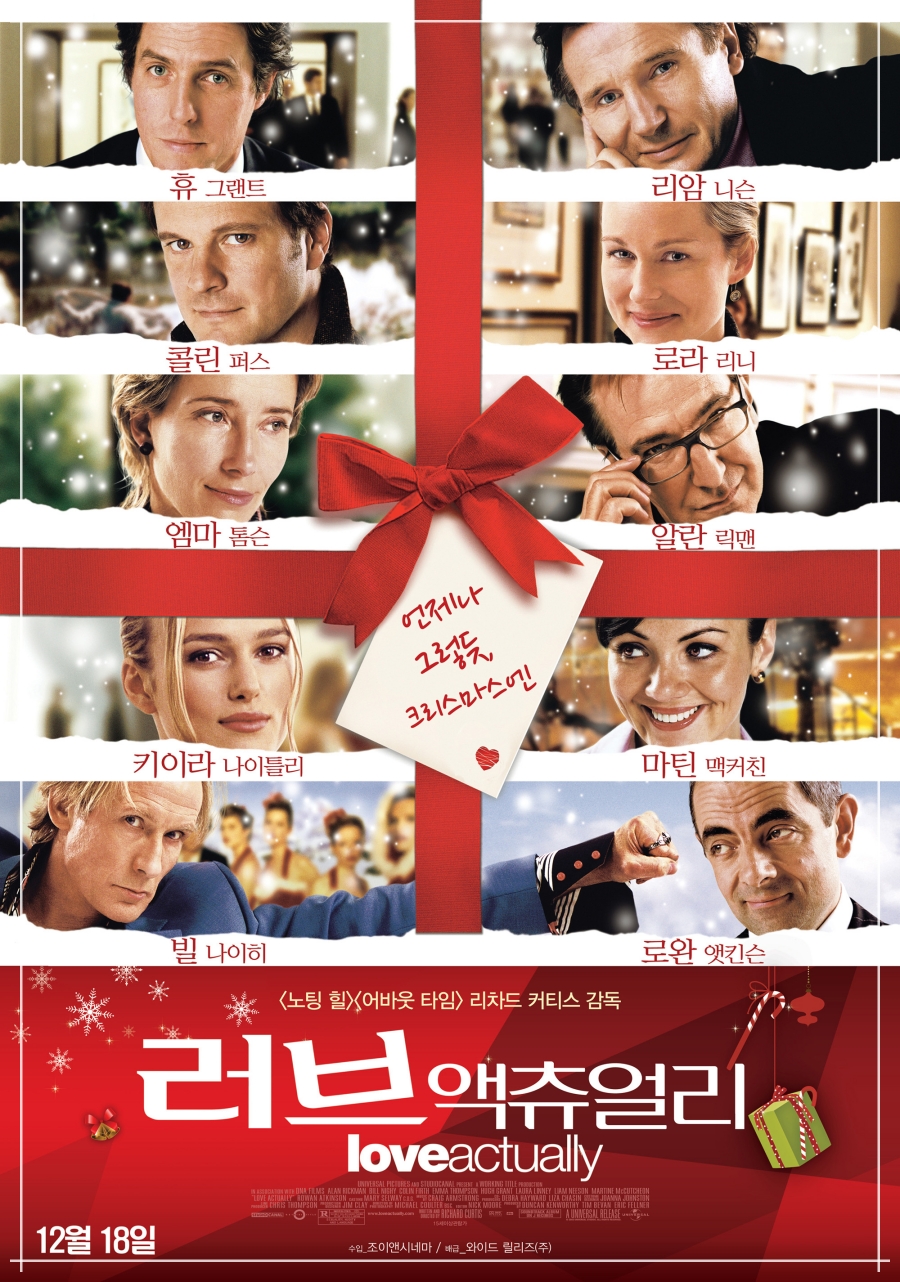 지금도 겨울 하면 떠오르는 작품으로도 유명한 <러브 액츄얼리> 입니다. 크리스마스에 일어나는 다양한 커플의 이야기를 보여주고 있는 작품입니다. 2003년에 개봉한 영화지만, 지금도 많은 사람들이 크리스마스에 이 영화를 찾아보거나, 특선영화로도 자주 편성되는 작품입니다.