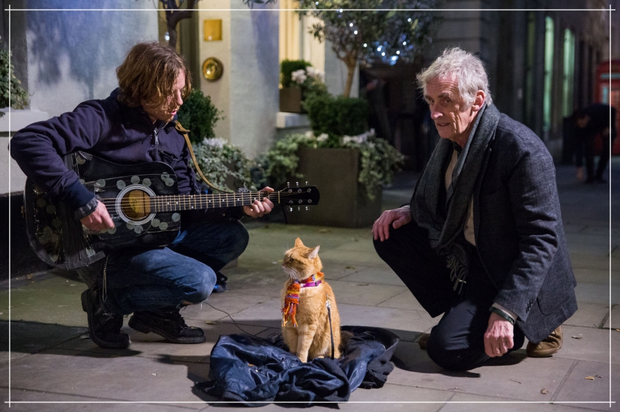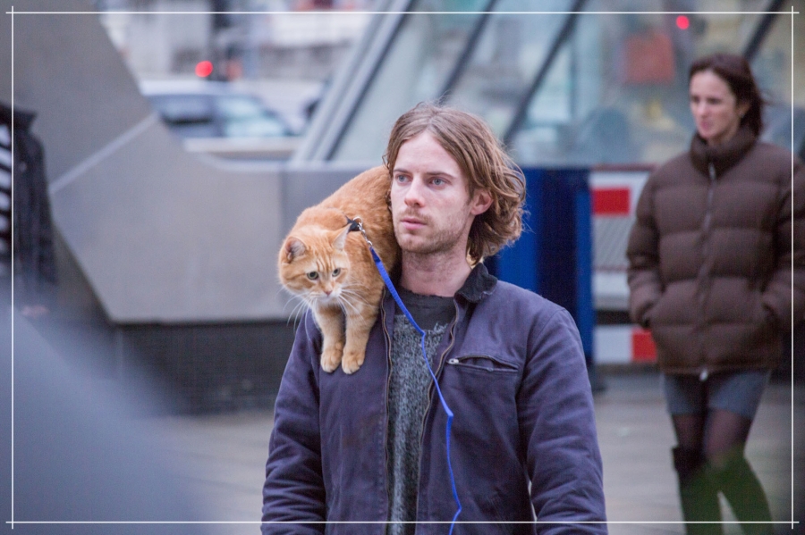 제임스는 앞에서 말했듯이 마약 중독자이며 노숙자고, 특별한 직업 없는 사람입니다. 그저 거리를 방황하면서 버스킹을 하는 인생을 살아가고 있죠. 영화적 설정이냐구요? 책을 보신 분들은 아시겠지만, 제임스 보웬은 진짜로 마약 중독자에 노숙자였습니다. 그런 그의 인생은 밥을 만나면서 서서히 변화되기 시작했죠.