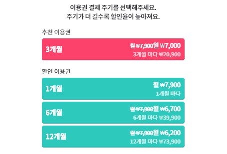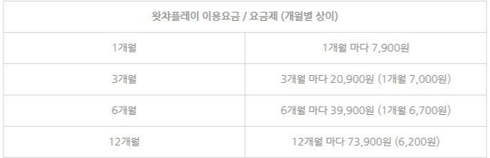 왓챠 플레이는 기간별로 가격이 정해졌지만