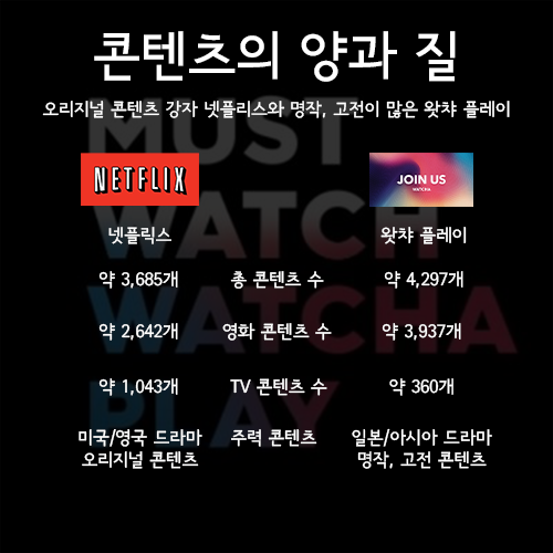 3. 넷플릭스 vs 왓챠플레이 :: 콘텐츠의 양과 질