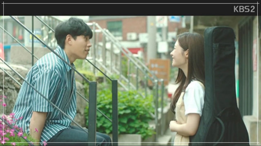 - 계약 유지를 위해서 싱어송 라이터로 컨셉을 바꾸자는 소속사 대표의 압박에, 기타를 배울 방법을 찾던 중에 편의점에서 박정민(남주인공)을 만나고 기타에 대한 이야기를 합니다. 그렇게 기타에 대한 이야기를 하면서 서로 친해지고 정민에거 기타를 가르쳐 달라고 하는데....
