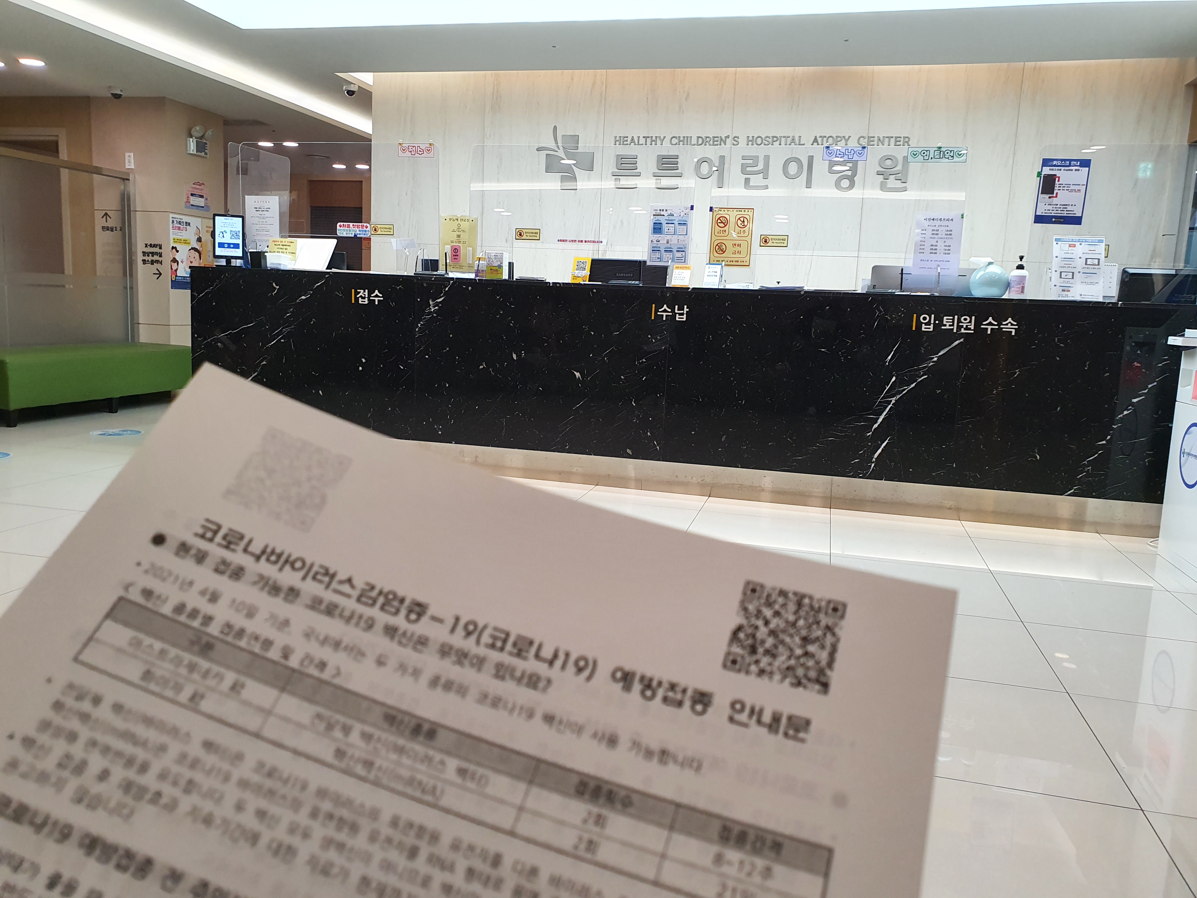 백신을 맞고 약 15분 정도는 병원에 남아서 반응을 확인해야 합니다. 간호사님이 오셔서 백신 접종 후 주의 사항에 대하여 설명을 조금 해주시고, 나머지는 프린트물을 참고해달라고 해주셨습니다. 병원에 사람이 많으니까 간호사님이 빛과 같이 등장했다가 빛과 같이 사라졌습니다. ㅋㅋㅋㅋㅋ