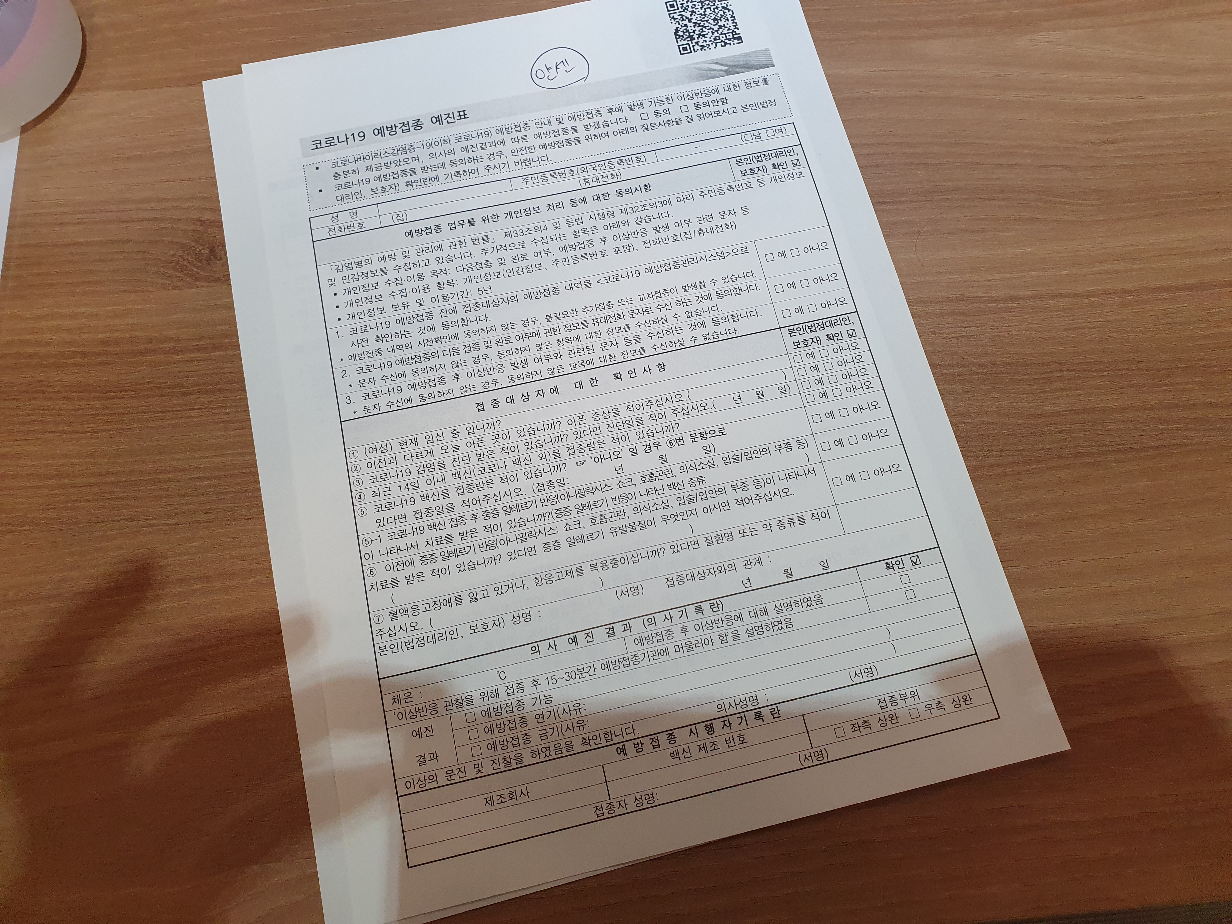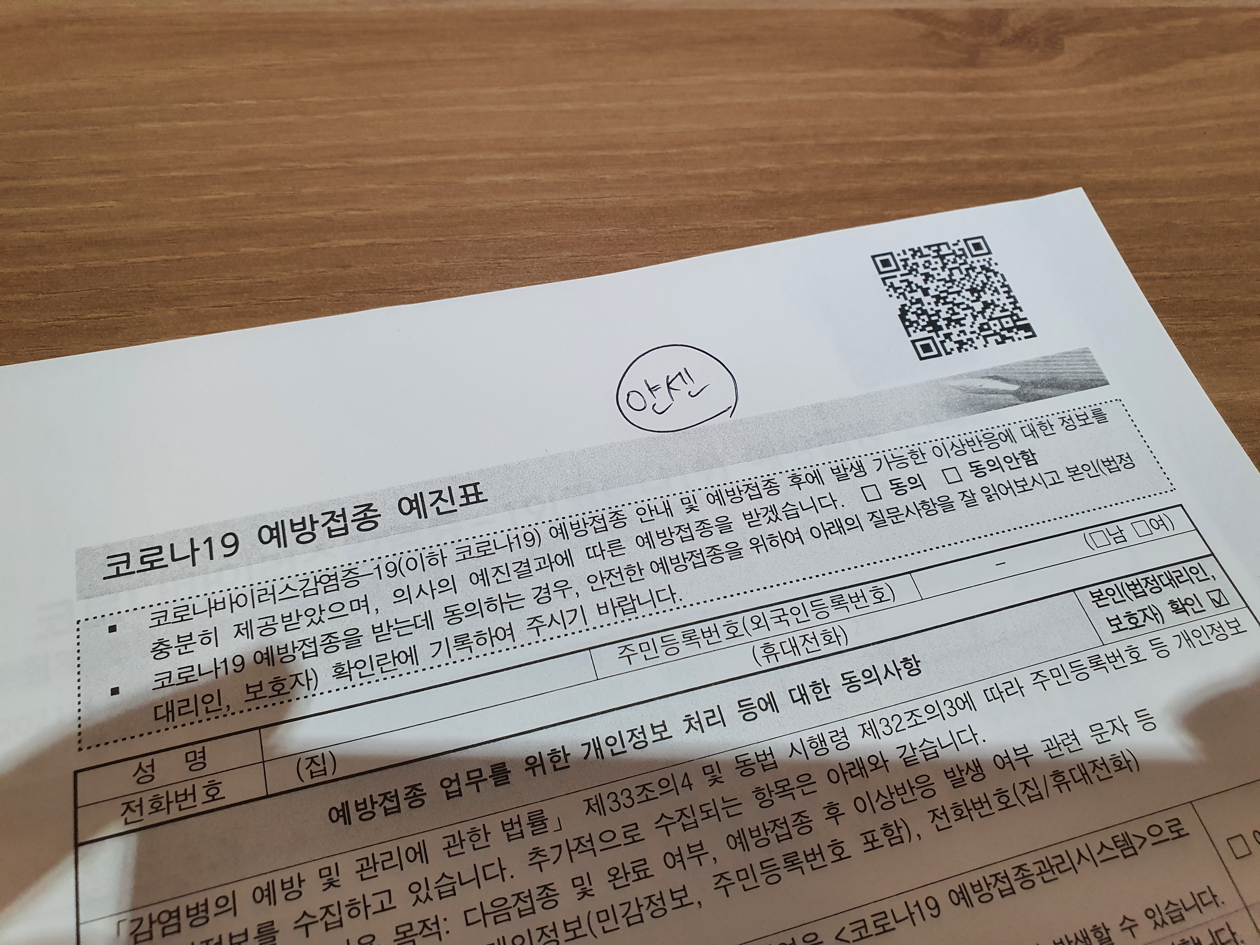 일단 먼저 신분증도 보여주고 얀센 백신을 맞기 위해서 설문지와 기저질환이 있는지 체크하는 내용을 작성해야 합니다. 진짜 귀찮기는 했지만, 백신을 맞을 수 있다는 것에 신나게 작성을 했습니다. 솔찍히 어려운 부분은 없고, 그냥 솔찍하게 작성하시면 큰 문제 없이 작성할 수 있습니다.