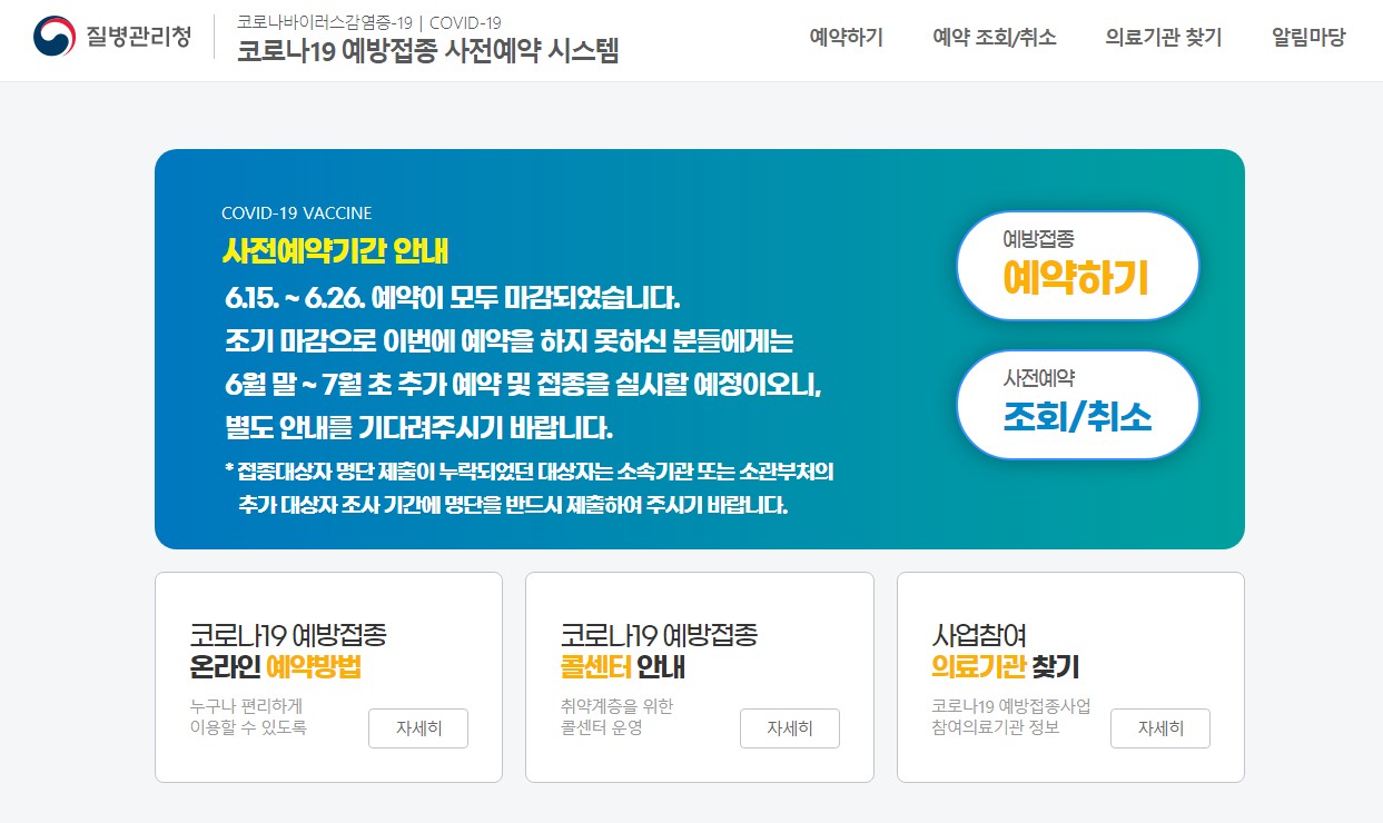 먼저 얀센 백신 접종을 신청하기 위해서는 <질병관리청>에서 운영하는 "코로나19 예방접종 사전예약 시스템"을 이용해서 예약을 진행해야 했습니다. 신청하는 당일 얼마나 많은 사람들이 모였냐면, 마치 대학생 시절에 수강신청을 하는 느낌을 받았습니다. 들어가자마자 약 300~400명 정도가 앞에 있다고 하면서 10분정도 기다려야 한다고 나오더라구요!