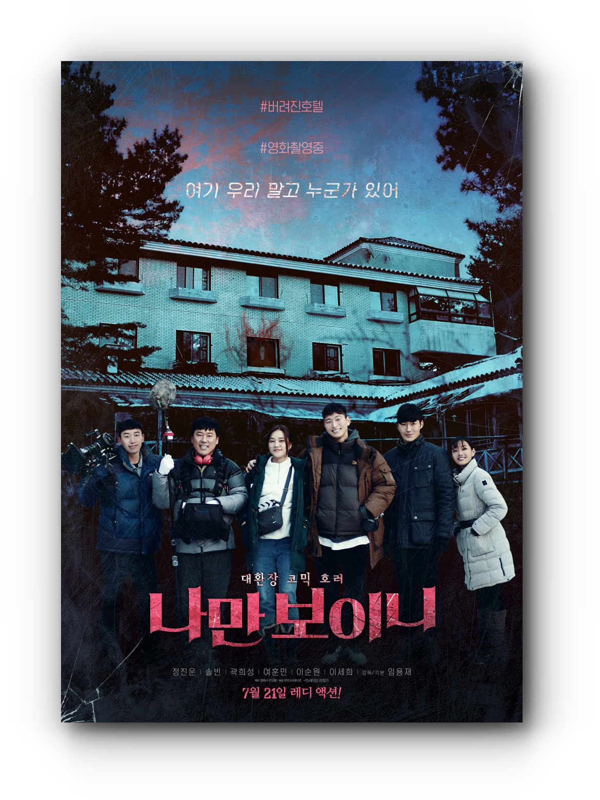 감독 장근과 동료들은 영화 촬영을 위해 버려진 호텔을 찾는다! 분명 여기엔 우리 6명 말고 아무도 없댔는데 저기 저분은 누구? 갑자기 분위기가 싸해지고 귀신을 봤다는 스태프들이 속출하며 애절한 로맨스 영화는 점점 아찔한 호러 영화가 되어가는데! 우리...이 영화 무사히 끝낼 수 있을까?