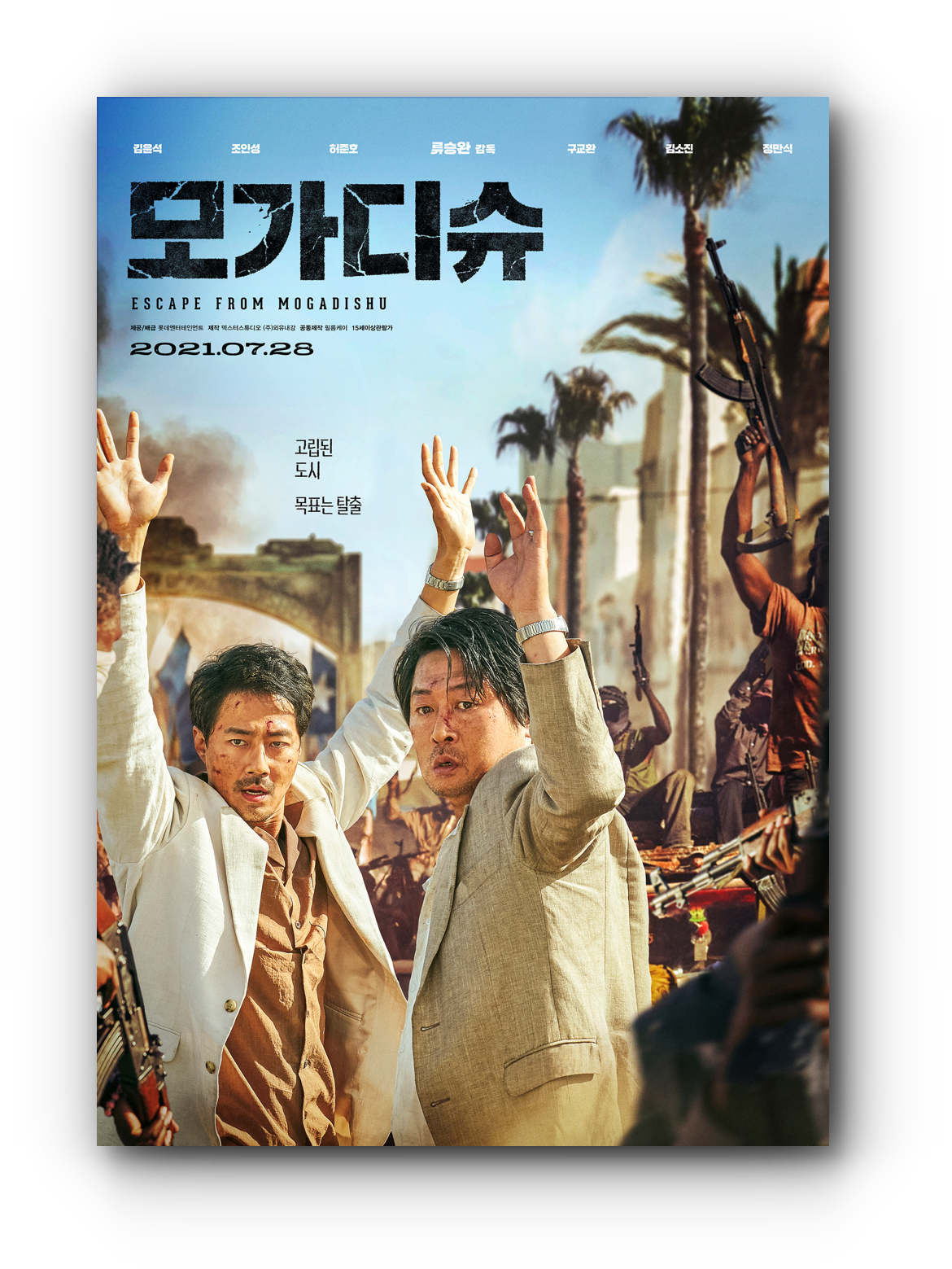 대한민국이 UN가입을 위해 동분서주하던 시기, 1991년 소말라이아의 수도 모가디슈에서는 일촉즉발의 내전이 일어난다. 동신마저 끊긴 그 곳에 고립된 대한민국 대사관의 직우너과 가족들은 총알과 포탄이 빗발치는 가운데, 살아남기 위해 하루하루를 버텨낸다. 그러던 어느 날 밤, 북한 대사관의 일생들이 도움을 요청하면서 문을 두드리는데....