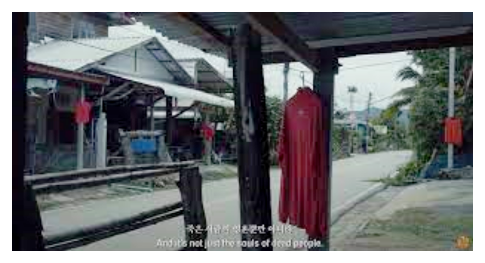 빨간옷을 걸어두었던 이유는 영화의 배경이 되는 지역인 곳에서 실제로 젊은 청년들이 아무런 이유 없이 죽는 사건이 일어나면서다. 그러던 어느날 한 랑종이 등장해서 "집 앞에 붉은색 옷을 걸으면 사망자가 나오지 않는다."라고 말했다. 그렇게 집 앞에 빨간 옷을 걸어두고, 더이상 젊은이들이 죽이 않았다는 이야기를 직간접적으로 알려준 것 같다.