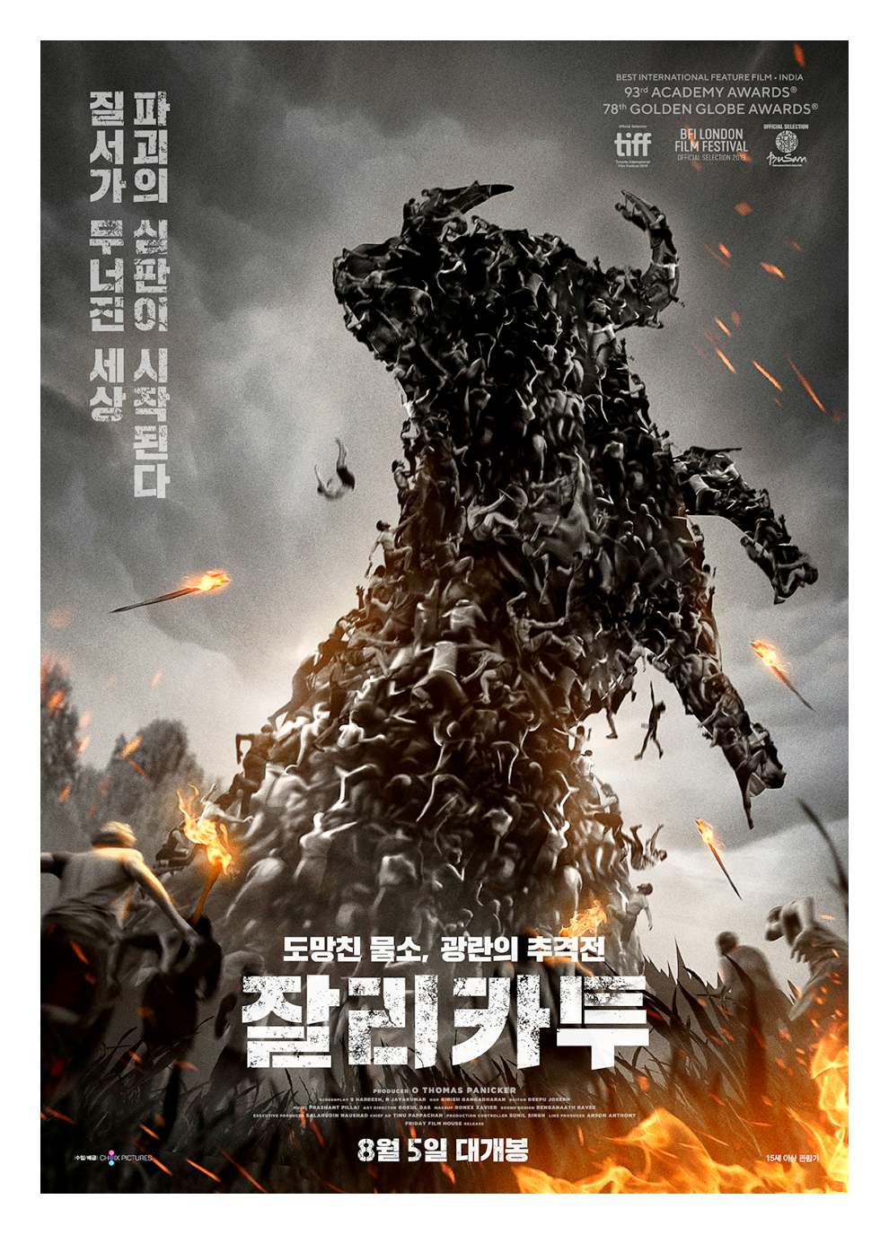 영화 <잘라카투>는 인도 남부 타밀나두주의 수확축제인 풍갈에서 진행하는 전통있는 집단 경기의 이름을 따온 작품이다. 황소를 남자들 무리 속에 풀어놓으며 참가자들이 황소의 등에 올라타서 최대한 오래 버티거나 소를 움직이지 못하게 제압하는 경기다. (물론 이 모든 과정이 엄청나게 살벌하다.)