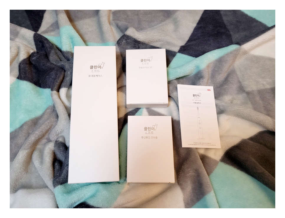 구성품으로는 오아 클린이 소프트 본체와 미세칫솔모 2개, 무선충전크레들이 들어 있어요! 그리고 휴대용케이스와 본체팁보호캡과 설명서가 들어 있습니다! 설명서는 진짜 간단하게 되어 있는데, 한국인은 설명서를 읽지 않는게 국룰이죠!