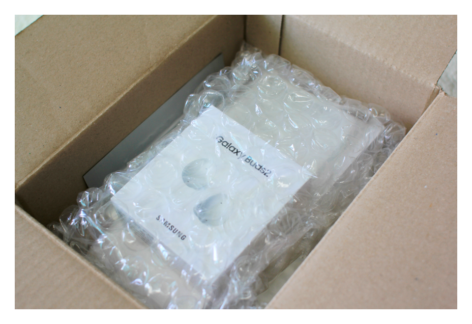 박스를 오픈하니까 역시 안전한 배송을 위해서 완충제가 탄탄하게 들어가 있습니다. 저게 겉으로 보기에는 1개지만, 속에는 2개 정도 더 있습니다! 이번에 사전예약으로 구매하신 분들이라면 [ 갤럭시버즈2 / 전용 정품 케이스 3종류 중 선택 / 케이스에 맞는 악세사리 ] 등으로 이루어져 있습니다.