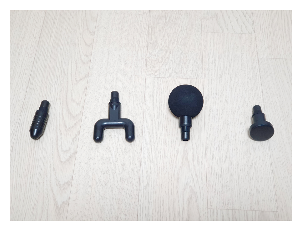 마사지건과 4가지 헤드를 보여드리겠습니다. 대부분의 제품과 동일한 형식의 헤드를 사용하고 있는 것 같더라구요! 아버지가 사용하시는 마사지건에도 비슷한 모습을 보여주고 있습니다. 보다보니까 생긴게 공구함 닮았네요 ㅋㅋ