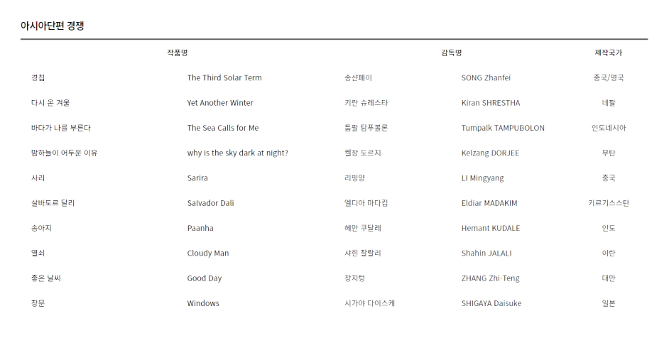 2. 아시아단편 경쟁