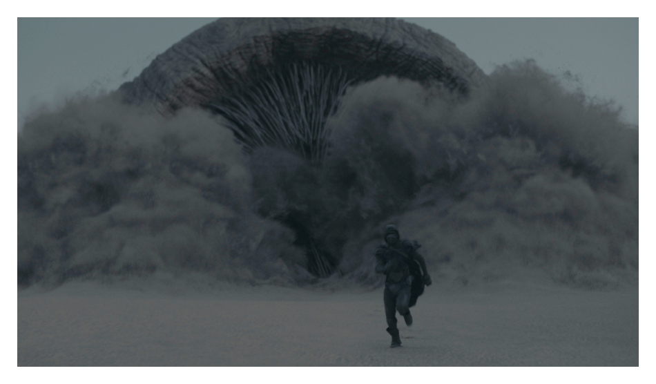 이정도면 <듄> 시각효과팀은 극한직업이라고 생각합니다. 사막 한가운데에 거대한 플랫폼을 설치하고 그 위에 모래를 덮어 조작함으로써 샌드웜이 모랫속을 해치고 다니는 것과 같은 효과를 신제로 구현했다고 합니다. 이러한 특수효과는 CGI로 작업하는 것과 비교해 상대적으로 훨씬 더 많은 시간과 노력 그리고 돈이 들어가지만, 배우들부터 진정성 있는 연기를 끌어내기 위해 한치의 망설임도 없이 직접 제작하는 것을 결정했다고 합니다.