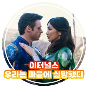 새로운 캐릭터들도 많이 나왔고, 앞으로 스토리에서 중요한 설정들도 많이 나왔던 작품 <이터널스>. 수많은 캐릭터의 감정을 전부 표현해야 했기에 감독님도 제작사고, 관객들도 모두 힘들었던 작품이라고 생각합니다. 그래도 마동석 배우님이 한국 최초 마블 히어로 타이틀을 가져가셨다는게 중요하죠!