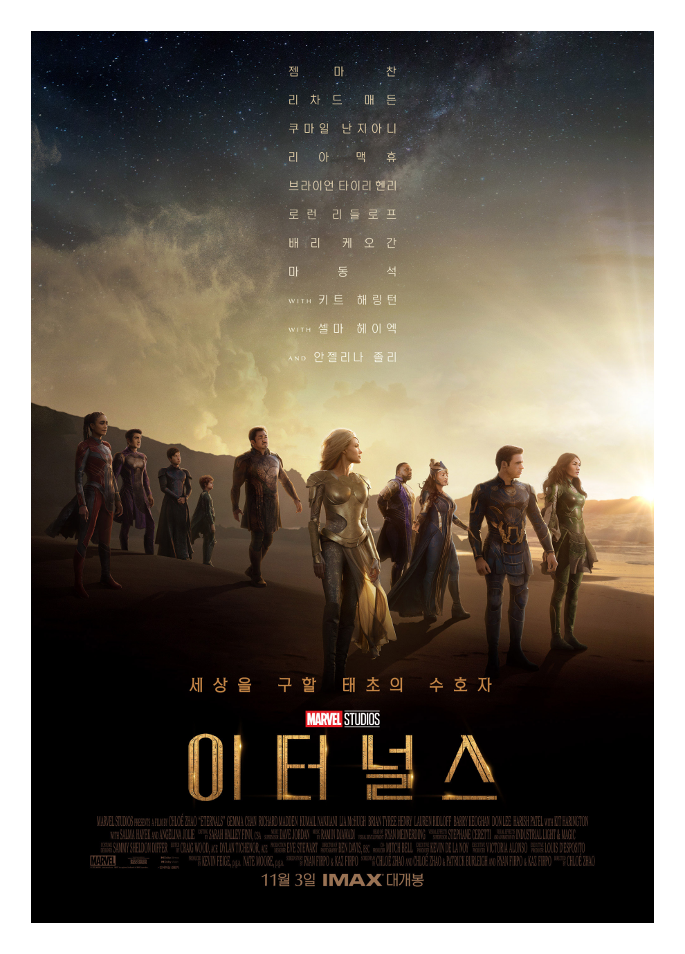 새로운 캐릭터들도 많이 나왔고, 앞으로 스토리에서 중요한 설정들도 많이 나왔던 작품 <이터널스>. 수많은 캐릭터의 감정을 전부 표현해야 했기에 감독님도 제작사고, 관객들도 모두 힘들었던 작품이라고 생각합니다. 그래도 마동석 배우님이 한국 최초 마블 히어로 타이틀을 가져가셨다는게 중요하죠!