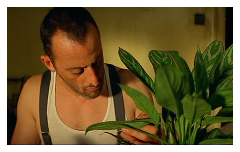 여기서 레옹을 상징하는 화분과 우유가 중요하다. 화분은 레옹의 순수함을 강조하고 있는 소품이다. 이는 전형적인 킬러의 클리셰를 재미있게 뒤튼 것이다. 레옹은 이전까지 나왔던 영화들의 킬러들과 다르다. 술도 먹지 않고, 담배, 욕설, 여자 등 킬러가 할 것 같은 모든 것들을 하지 않는다. 그렇기에 우유를 마시는 레옹의 모습에서 순수함을 가지고 있다는 것을 표현한다.