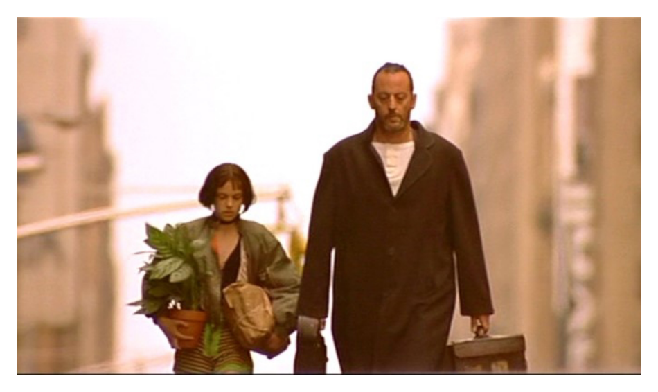 여기서 레옹을 상징하는 화분과 우유가 중요하다. 화분은 레옹의 순수함을 강조하고 있는 소품이다. 이는 전형적인 킬러의 클리셰를 재미있게 뒤튼 것이다. 레옹은 이전까지 나왔던 영화들의 킬러들과 다르다. 술도 먹지 않고, 담배, 욕설, 여자 등 킬러가 할 것 같은 모든 것들을 하지 않는다. 그렇기에 우유를 마시는 레옹의 모습에서 순수함을 가지고 있다는 것을 표현한다.