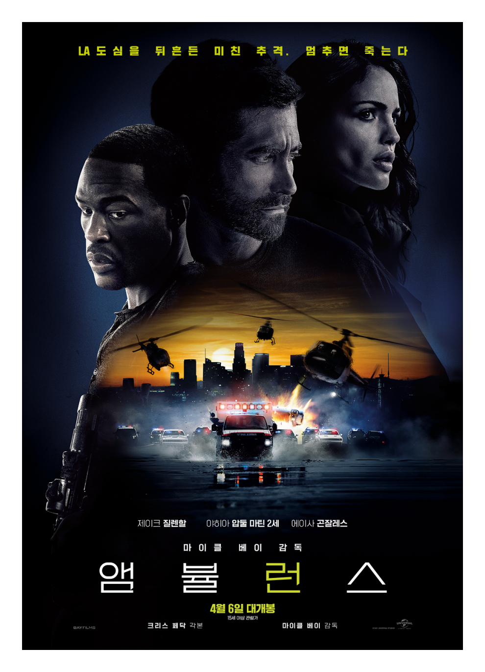 구급대원 캠과 부상당한 경찰이 탑승한 앰뷸런스를 탈취해 LA 역사상 가장 위험한 질주를 하게 되는데....