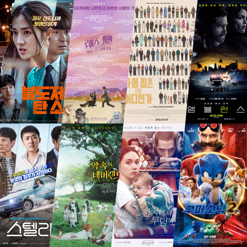벌서 벚꽃이 피어나는 아름다운 4월이 되었습니다. 2년동안 코로나로 고생이 많았던 우리에게, 선물을 주는 것 같았습니다. 그리고 극장에도 많은 작품들이 많이 개봉하고 있습니다. 이번에 극장에서 상영중인 작품 8개를 선택했습니다. 어떤 작품들이 있는지 타다닥과 함께 알아볼까요?