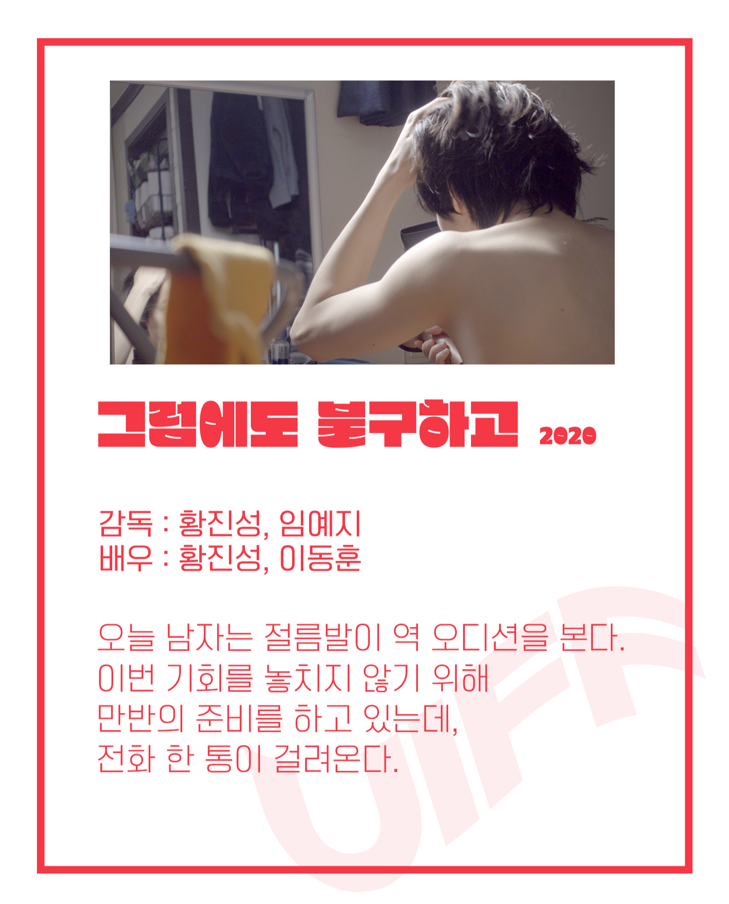 배우 지망생 정우는 거듭되는 좌절에 마지막 오디션을 보기로 결심한다.