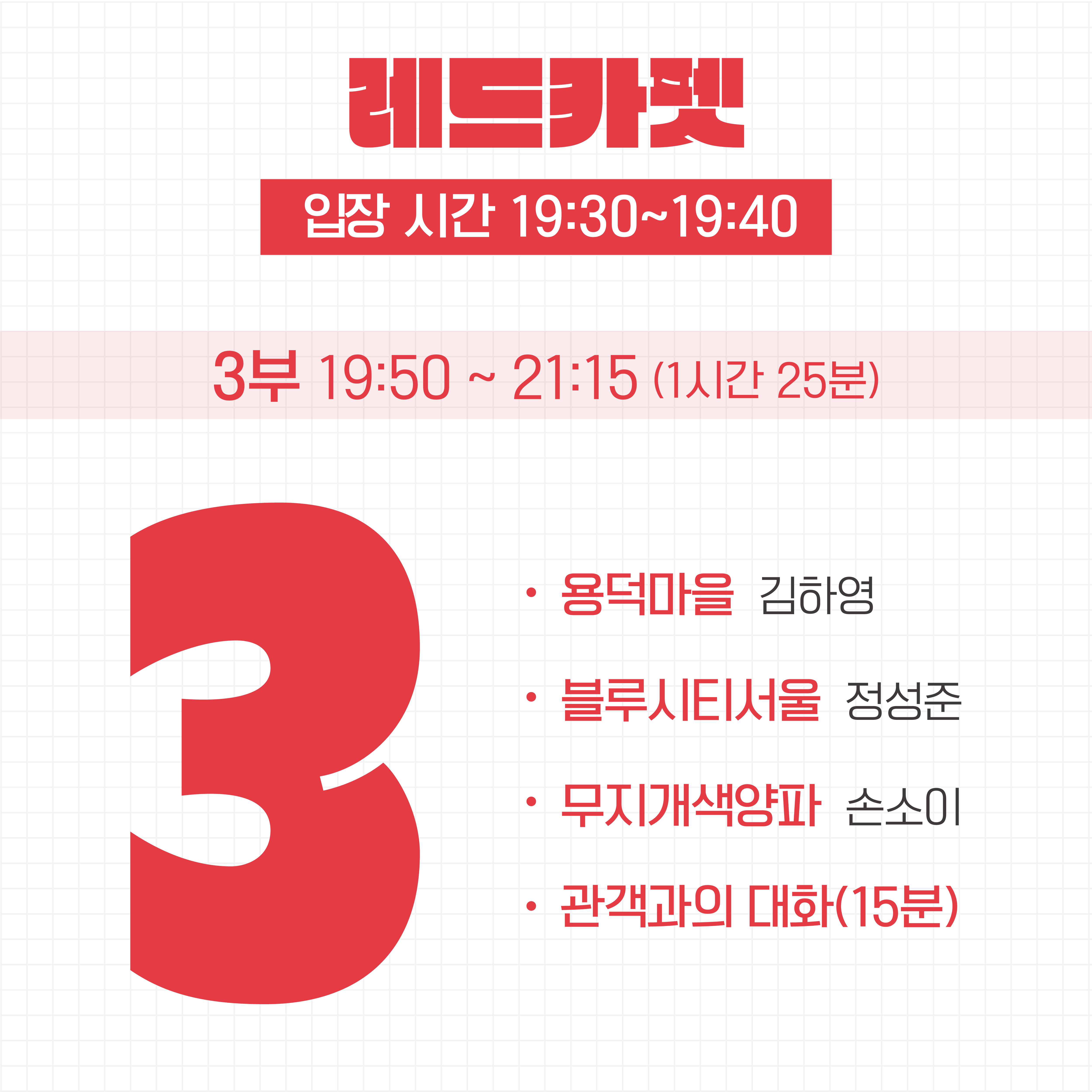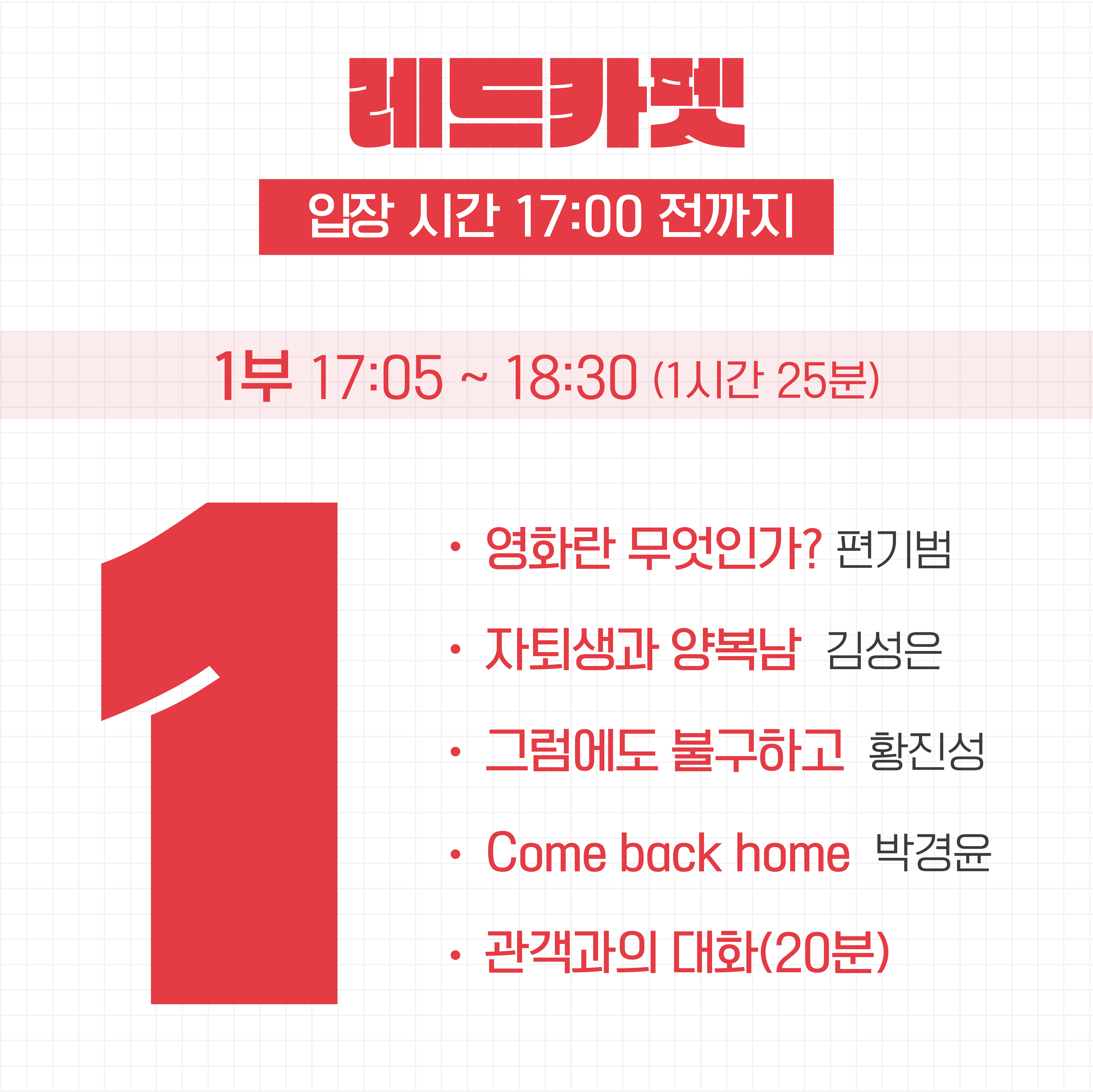 레드카펫의 영화 예매는 모두 무료(FREE) 입니다~ 편안한 마음으로 예매를 해주시기 바랍니다! 모든 회차를 전부 참석하실 필요는 없지만, 3부가 끝나고 시상식이 있으니까 꼭 참여 부탁드려요!